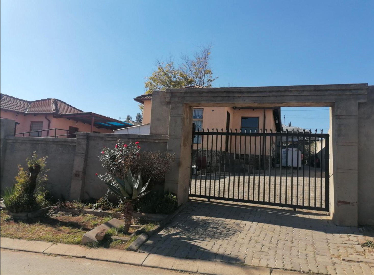 – The yard is paved, walled and gated.