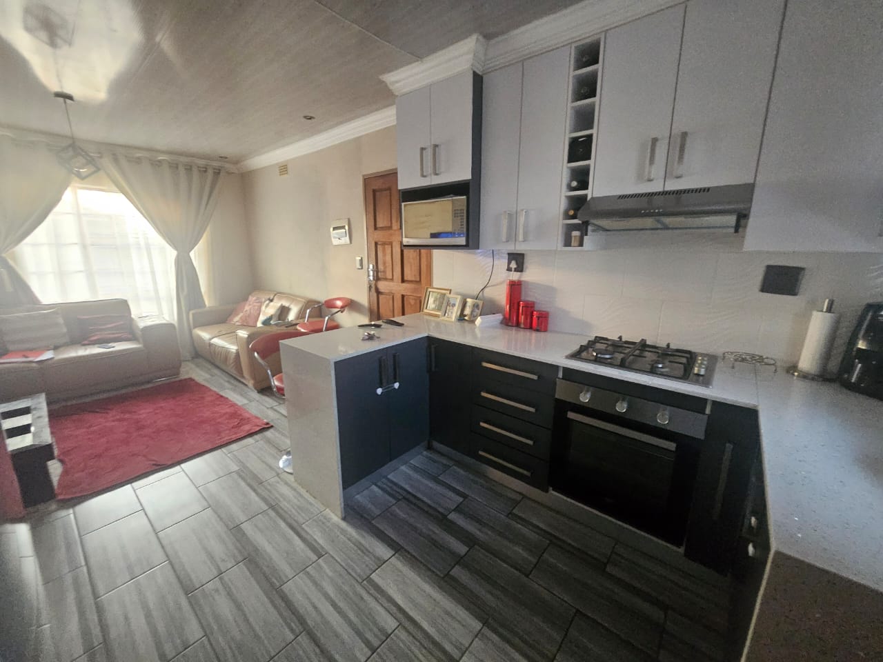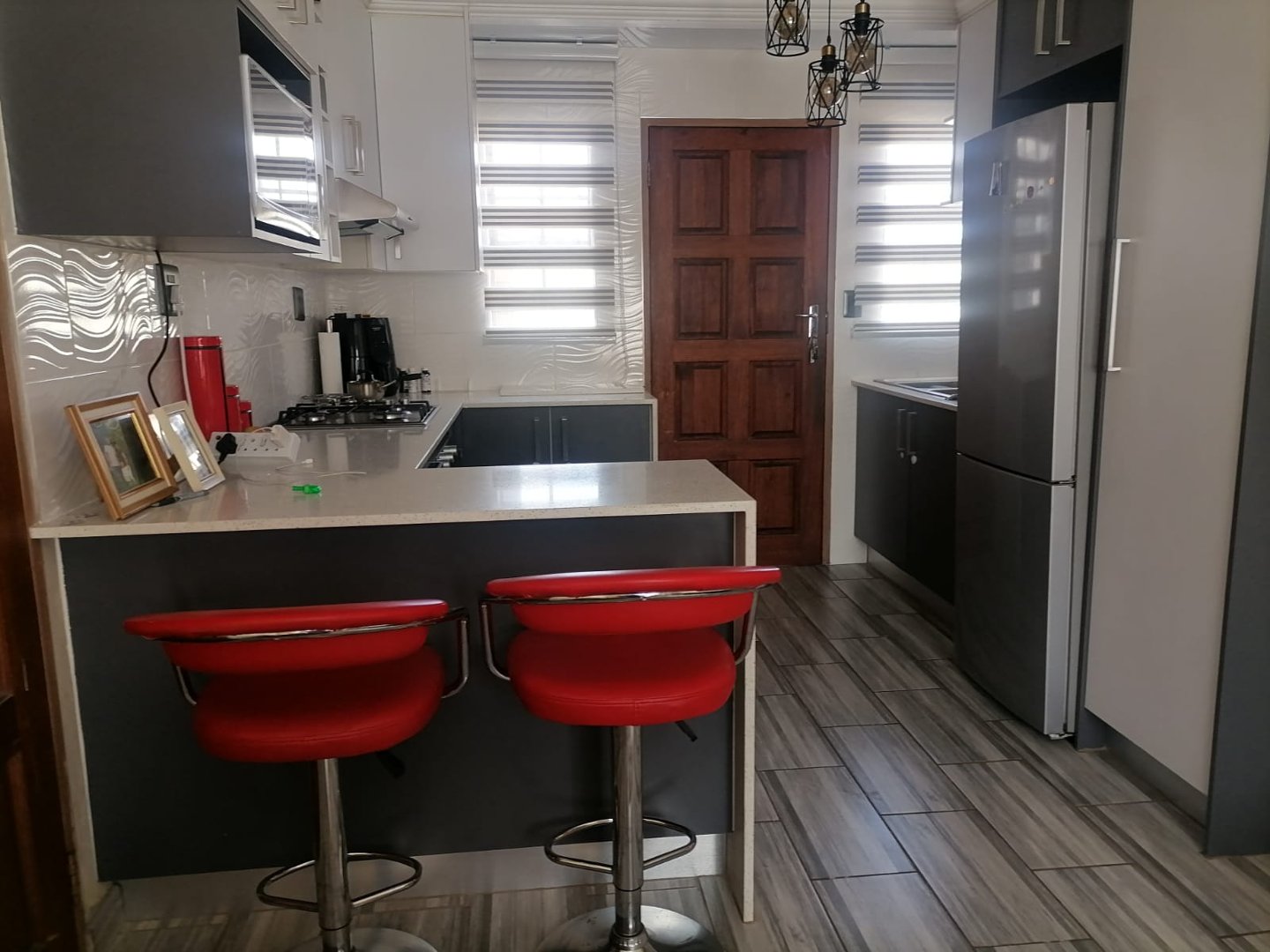 A Chef’s delight kitchen, equipped with sleek Veneer cupboards, granite tops and a 4 -plate gas stove, sink and tiled floors. This kitchen combines style and functionality for all your needs.