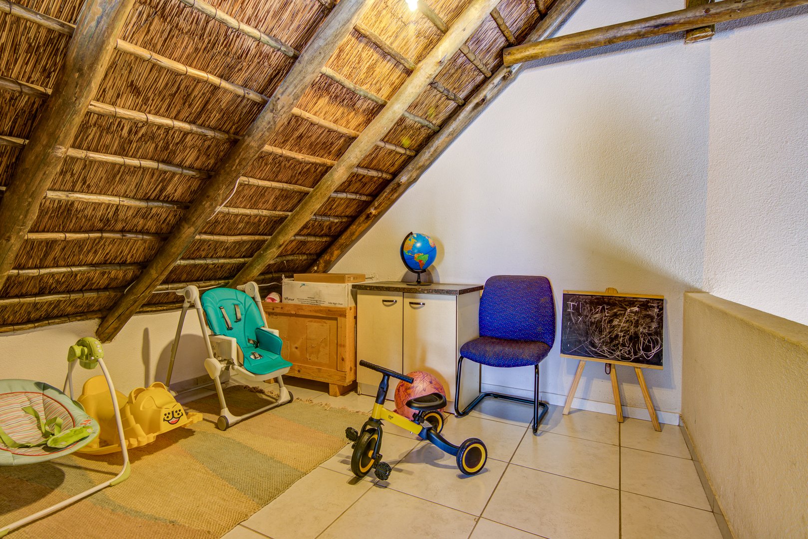 Upstairs is another bedroom room that can be either used for a study, children’s room or playroom, and the solder can be used for additional storage space.