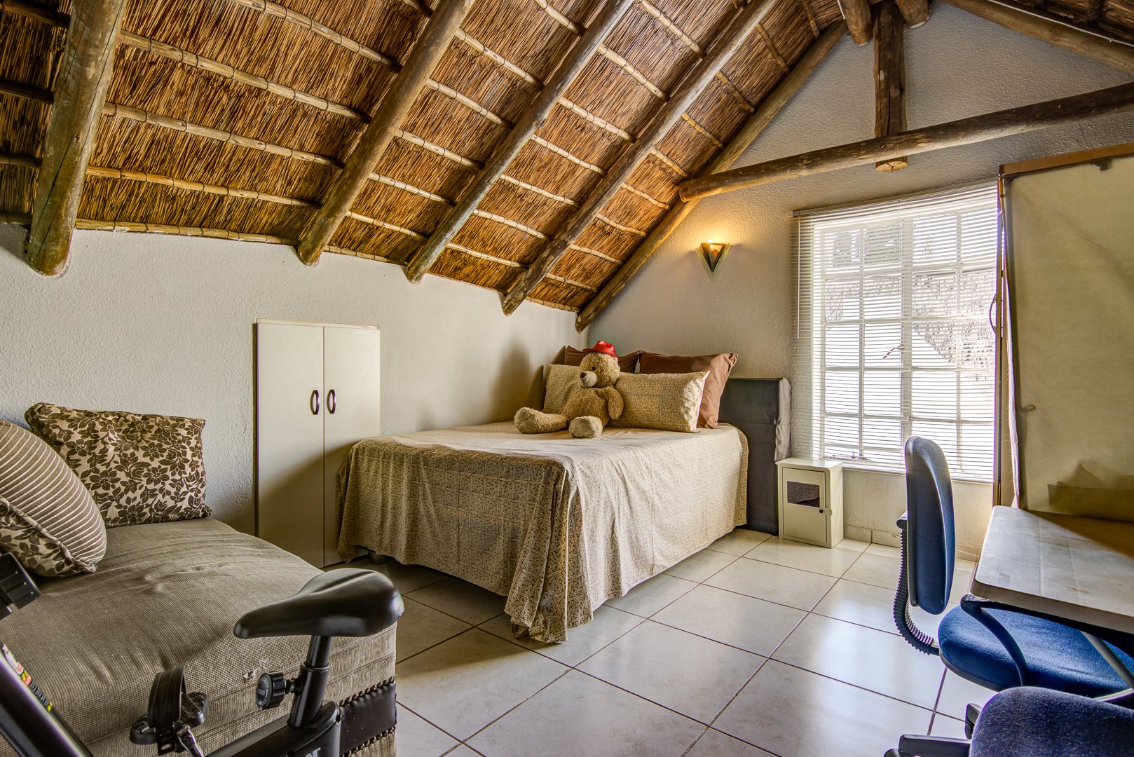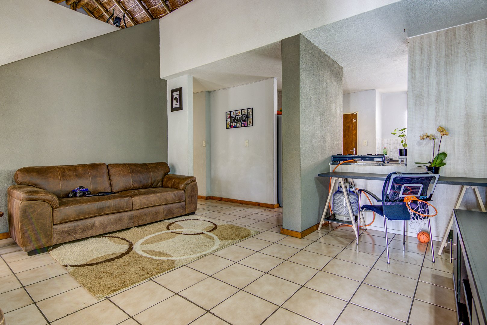 This three Bedroom Thatch roof house is located in the safe gated community of Partridge Hall. It is conveniently located close to many sought-after schools in the area, Arwyp hospital, a variety of Shopping Centers including Festival mall and Greenstone mall, also in close proximity to main roads.